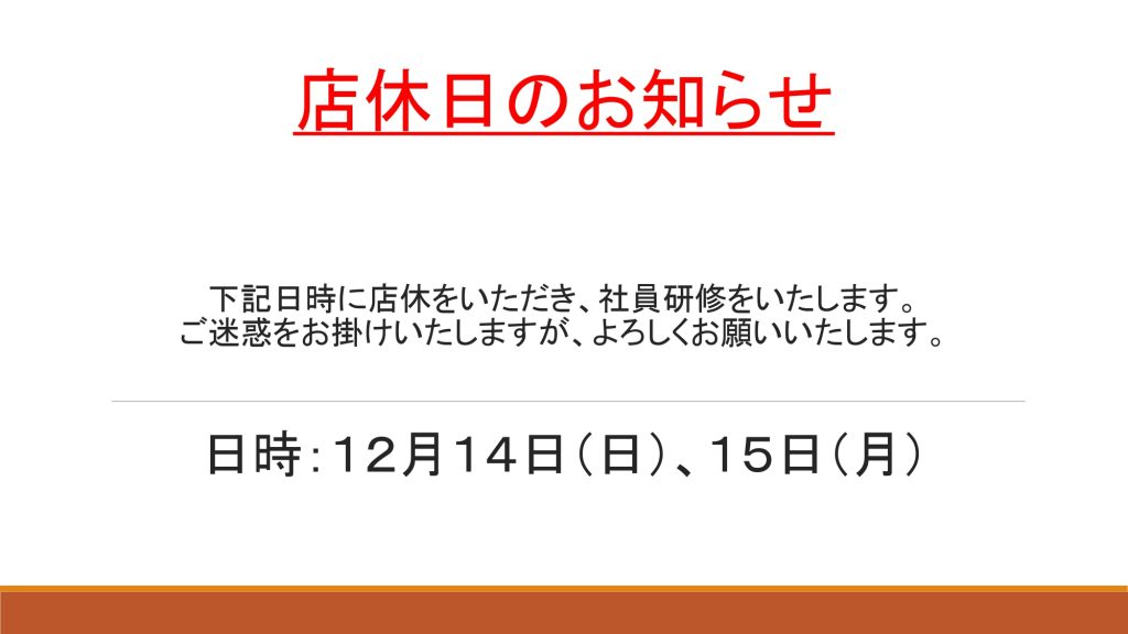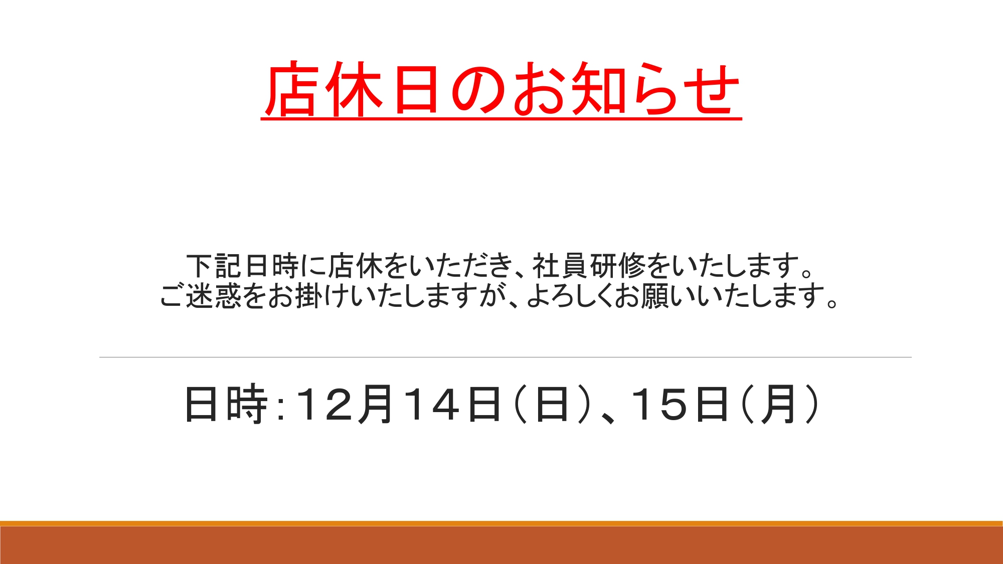 店休日のお知らせ(2025年12月14日、15日) 2025年12月9日 いつもご利用いただきありがとうございます。 下記日時は社員研修のため、店休日とさせていただきます。 2025年12月14日(日)、15日(月) ご迷惑をお掛けしますがよろしくお願いいたします。 埼玉県本庄市より愛をこめて 『楊喜家』